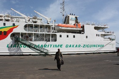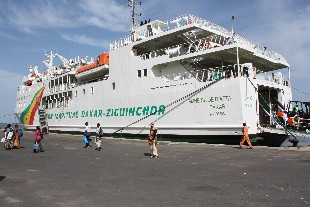 Das große Schiff "Aline Sitoe Diatta" hatte seine Jungfernfahrt vor einem Jahr gemacht. Die Aline Sitoe ersetzt die Vorgängerin "Le Willis", weil diese zu klein war und außerdem kein Autodeck hatte.