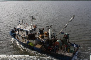 Ein Fischkutter liefert sich ein Rennen mit uns !