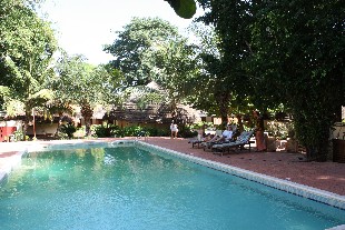Gegen 15 Uhr kamen wir im "Hotel Hobbe" in Kolda an. "Hobbe" bedeutet in der Sprache "Wolof", der wichtigsten Verkehrssprache im Senegal "Fremde". Wir bekamen ein kleines Zimmer im Nebengebäude mit einem großen Waschraum mit Dusche. Die Küche zauberte uns schnell ein leckeres Abendessen und danach fuhren wir zu der neuen "Residenz" von WV, wo wir von Maurice Faye sehr herzlich begrüßt wurden.