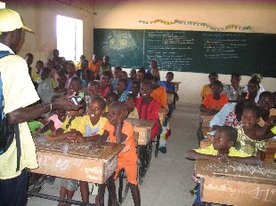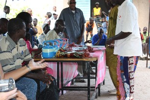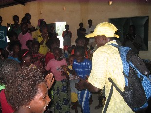 Tackos Mutter hatte für uns eine große Schale Reis mit einer herrlichen Soße aus Tomaten und Zwiebeln gekocht und nach einer anschließenden "Siesta" mit allen Dorfbewohnern fuhren wir wieder zum WV-Büro zurück. Dort fand eine Mitarbeiterversammlung zur Vorbereitung des großen Festes zur Sicherung der Rechte der Kinder statt. Hierbei handelte es sich um ein Projekt mit senegalesischen Kindern und Kindern aus dem benachbarten Guinea-Bissau, das an diesem Samstag in Salikegne, einer kleinen Stadt an der Grenze zwischen Guinea-Bissau und dem Senegal, durchgeführt werden sollte.