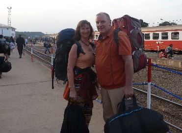 Auf dem Bahnhof von Ngaoundéré, im Hintergrund unser Zug der CamRail, der uns nach Yaoundé bringen soll.