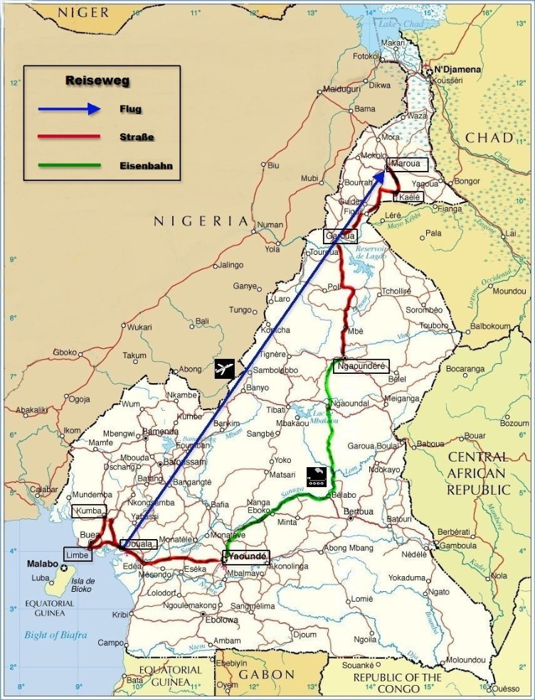 Abschließend kehren wir dann nach Douala zurück, von wo aus wir am 11.12. mit einer Übernachtung in Addis Abeba nach Frankfurt zurückfliegen werden.