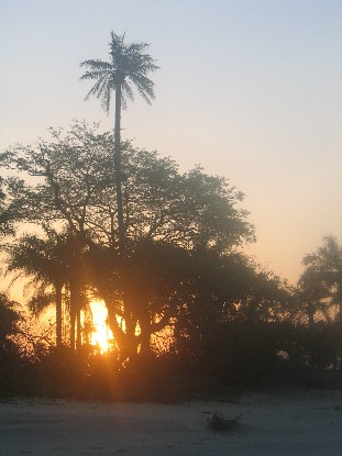 Ich machte in meiner Freizeit stundenlange Spaziergänge an dem vollkommen verlassenen Strand. Wenn man weit genug geht, erreicht man in einer Richtung eine wunderschöne Mangrovenlandschaft, die bei Ebbe begehbar ist. In der anderen Richtung befindet man sich nach etwa 2 km in einem Gebiet ähnlich einem Naturreservat, einem von Palmen umsäumten Ausläufer des Ozeans. Im Wasser sollen auch Krokodile sein ...
