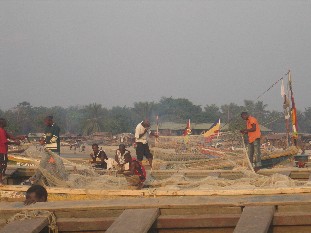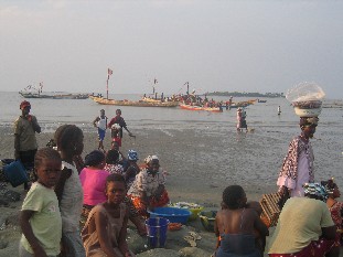 Wir machten einen Ausflug zum Hafen von Koundindé. Es gibt sehr viel Fisch im Ozean. Von weit her kommen Händler und kaufen den Fisch auf.