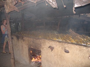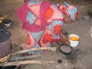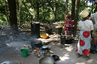 Dort besuchten wir eine Familie, die gerade dabei war, aus Palmöl und Asche von Kakaoschalen "schwarze Seife" herzustellen.