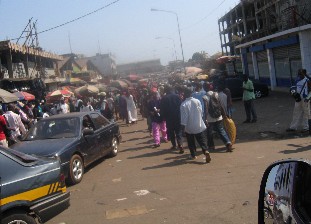 Etwa 50 km vor Conakry in dem Städtchen Dubreka werden wir zum ersten Mal durch Straßenkontrollen aufgehalten. Und danach folgt eine Kontrolle der anderen, ca. alle 5 km wieder. Je mehr wir uns Conakry nähern, desto größer wird die Staubglocke über uns. Die schöne rote Erde rund um Koundindé verändert sich in grau-gelben Sandstaub.