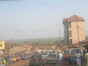 Nach 2 Wochen in Dan Kelle Kelle reisten wir in einem Kleinbus nach Conakry. Die ersten 30 km fuhren wir über Feldwege. Dann erreichten wir die N3. Ab Boffa (50 km von Koundindé) ist diese gut befahrbar. Für die 260 km haben wir etwa 5 bis 6 Stunden gebraucht.