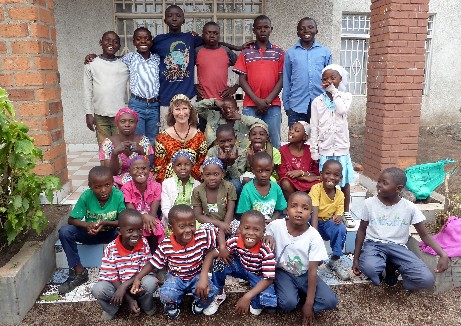 Alle 22 Kinder mit Heim-Mama Coletta und Willeke Kliesow, der Patenschaftsbetreuerin des Vereins "SunForChildren"
