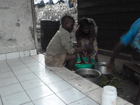 Reihum helfen die Kinder Mama Coletta beim Kochen und Putzen.